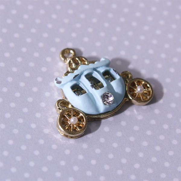 Подвеска металлическая "Карета голубая" со стразами (390)