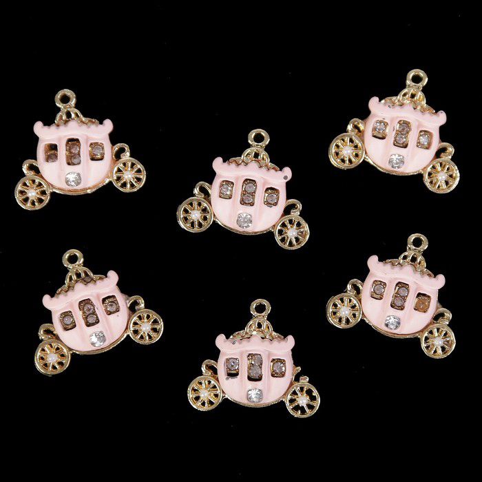 Подвеска металлическая "Карета светло-розовая" со стразами (391)