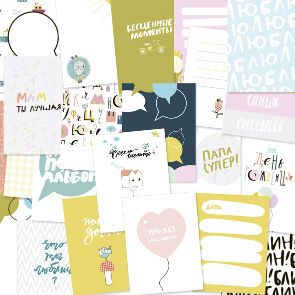 Набор карточек для скрапбукинга. В наборе 24 односторонних карточки размером 7,5x10 см. Плотность 190 г/м2