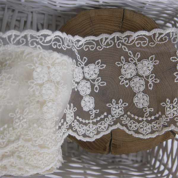 Кружево на сетке 10 см "Цветочки и фестоны", цвет кремовый
