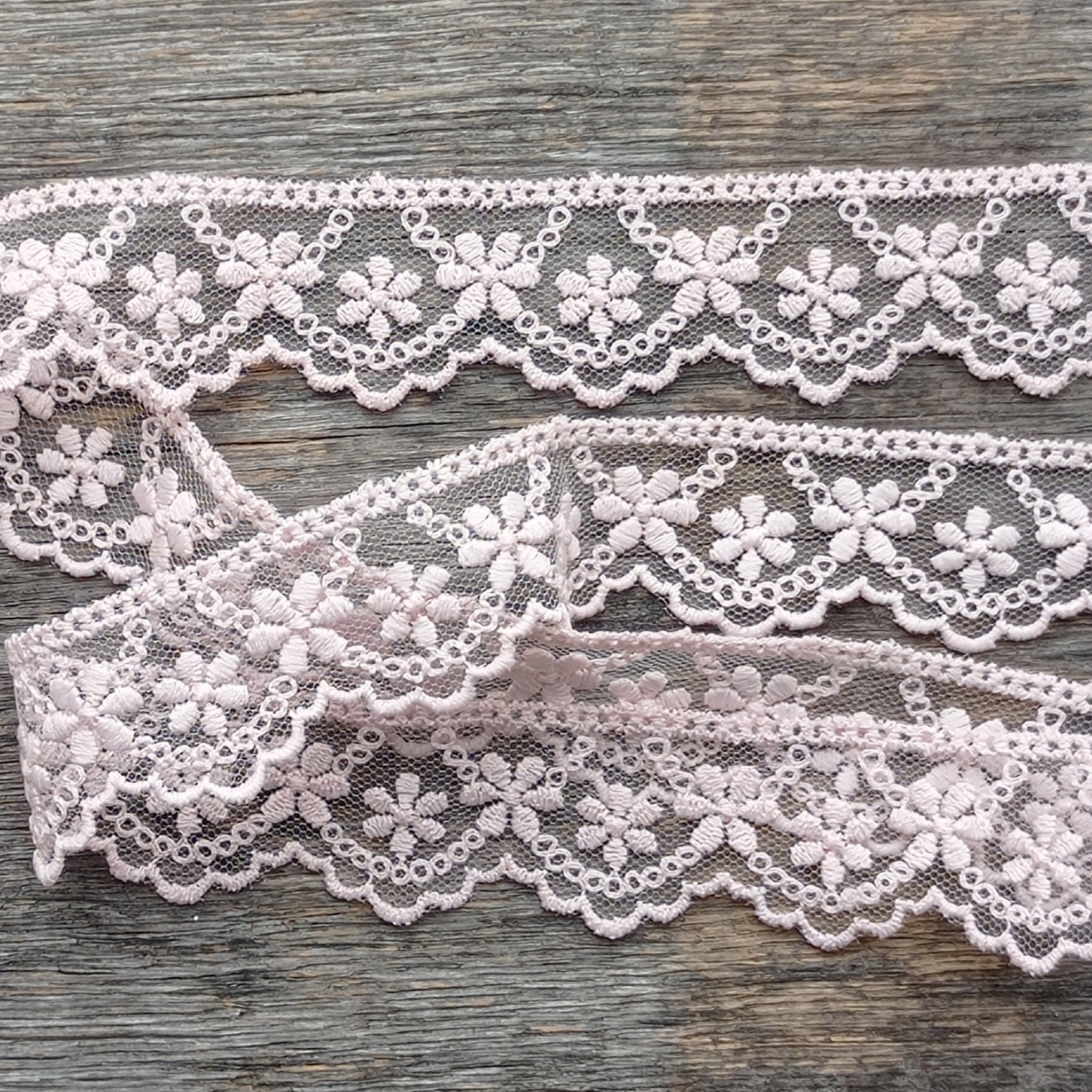 Кружево на сетке 2,5см "Цветочки" цвет нежно-розовый