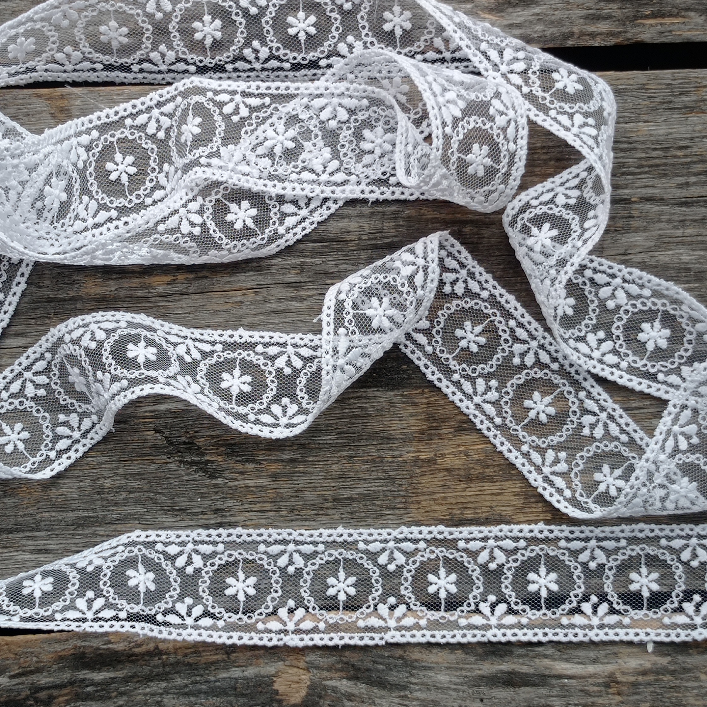 Кружево на сетке Цветок в круглой рамке 3см цвет белый