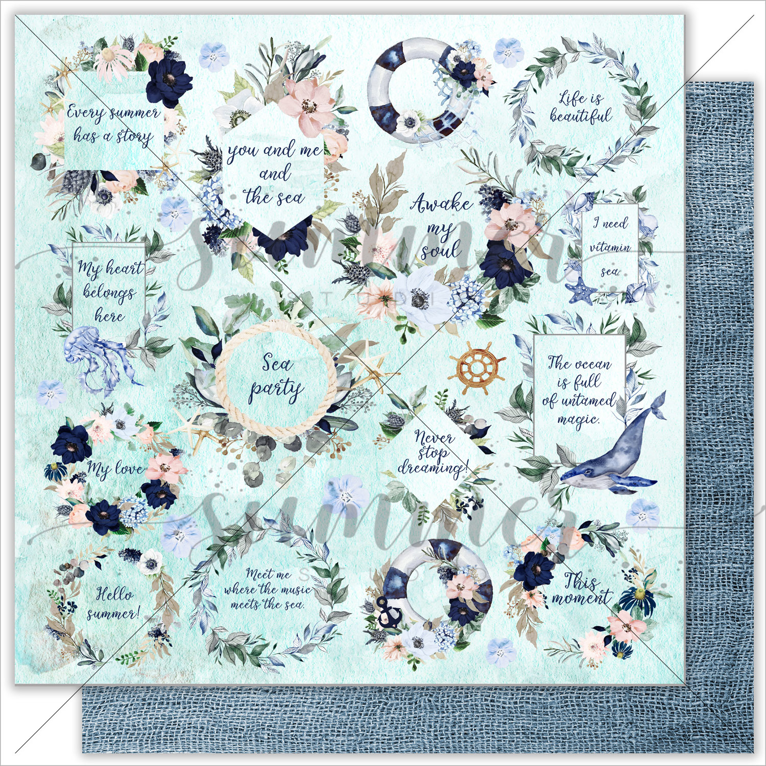 Бумага Summer studio "Marine Bloom", Royal sea (SMST70)