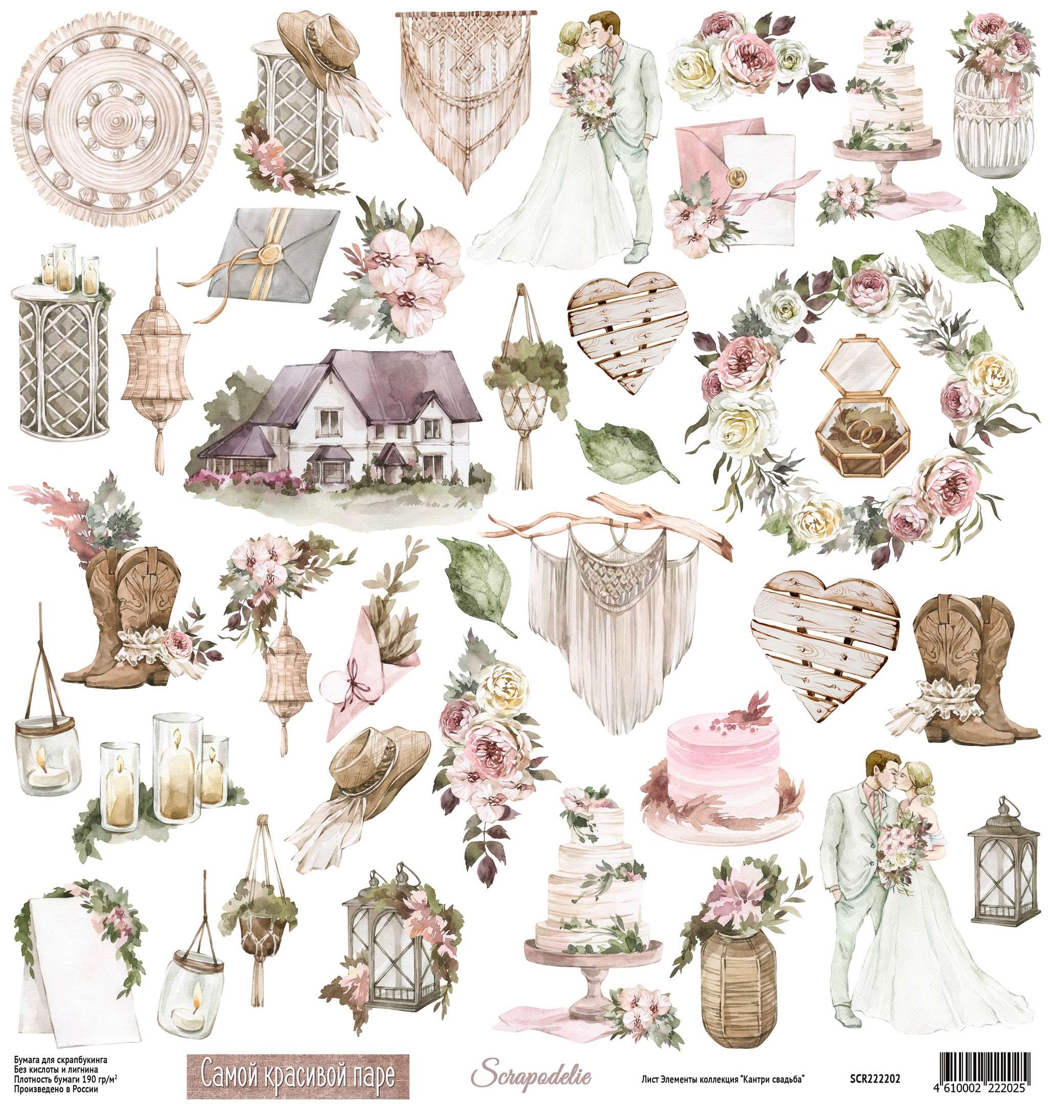 Бумага Scrapodelie "Кантри свадьба" Элементы (SCR102)