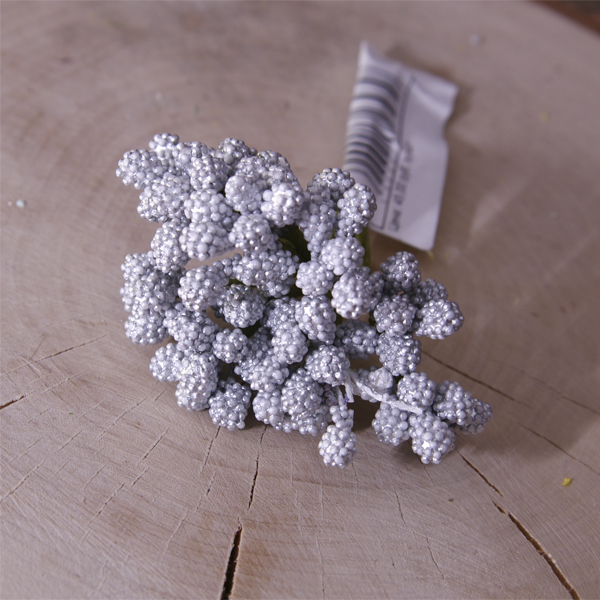 Букетик ягодный "Тычинки-шишечки", цвет серебряный