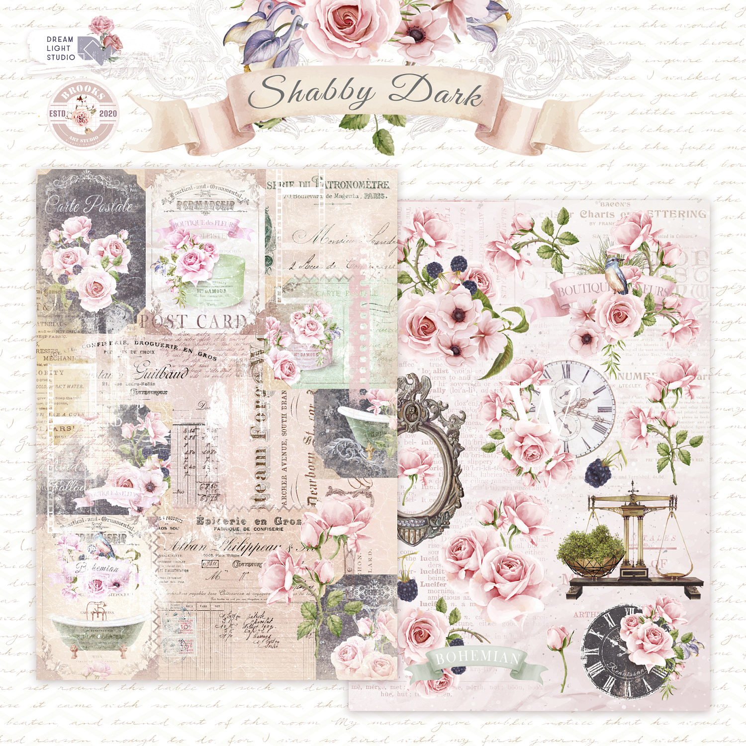 Набор бумаги DreamLightStudio А5 "Shabby Dark"