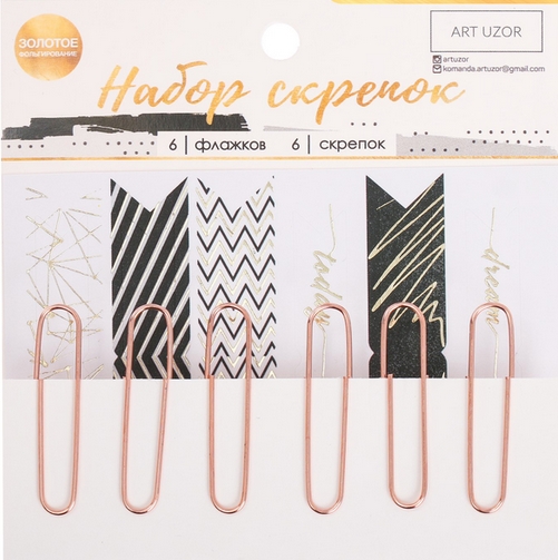 6 скрепок и 6 флажков в наборе. Размер упаковки 11 × 11 см