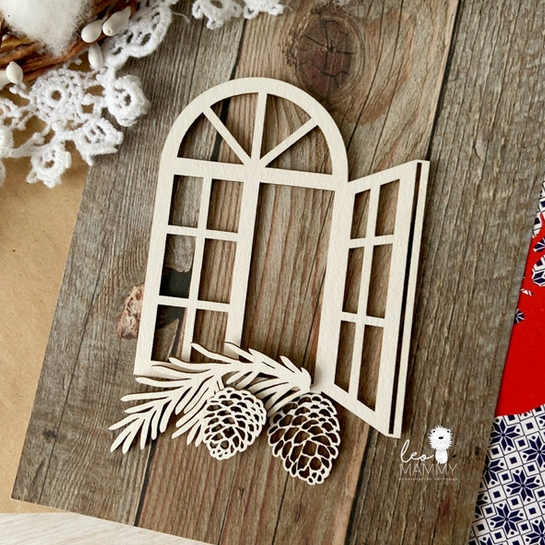 Чипборд LeoMAMMY "Окно с сосновой веточкой и шишками"