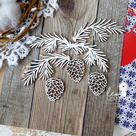 Чипборд LeoMAMMY "Набор сосновых веточек с шишками"