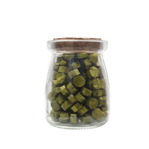 Сургуч в эстетичной стеклянной баночке с пробковой крышкой. Около 60гр. (180шт) Размер одной гранулы около 1см, толщина 0,5 мм. Примерно на один оттиск 2,5см нужно 10 гранул.