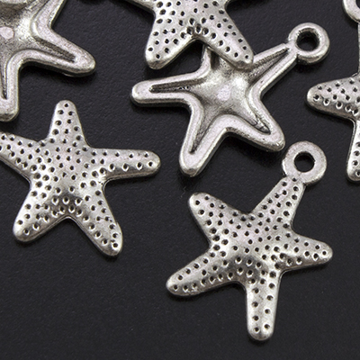 Подвеска металлическая "Морская звезда" мини. Цвет серебряный