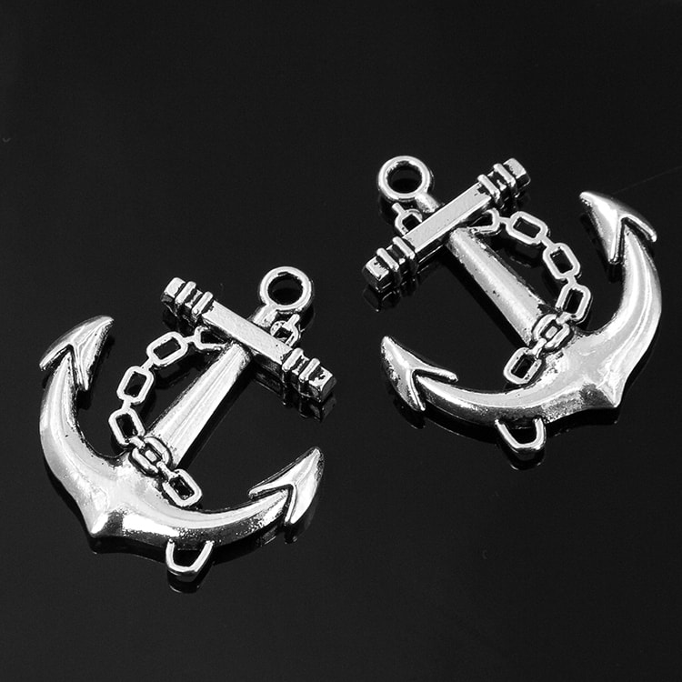 Подвеска металлическая "Якорь с цепью". Цвет серебряный. (36)