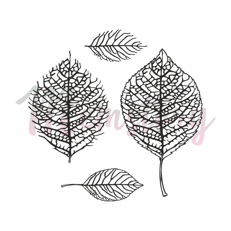 Штамп фотополимерный, бирюзового цвета. Размер маленького листочка - 2,5 x 1 см Прожилки - 1,9 x 0,9 см; Большой листочек - 2,5 x 4,5 см Прожилки - 2,4 x 3,4 см.