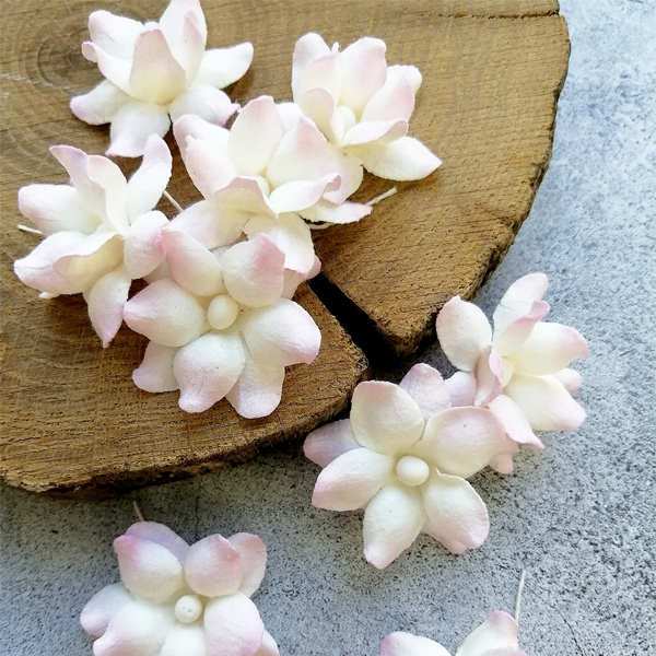Цветок фиалки, цвет белый с розовыми кончиками 1 шт