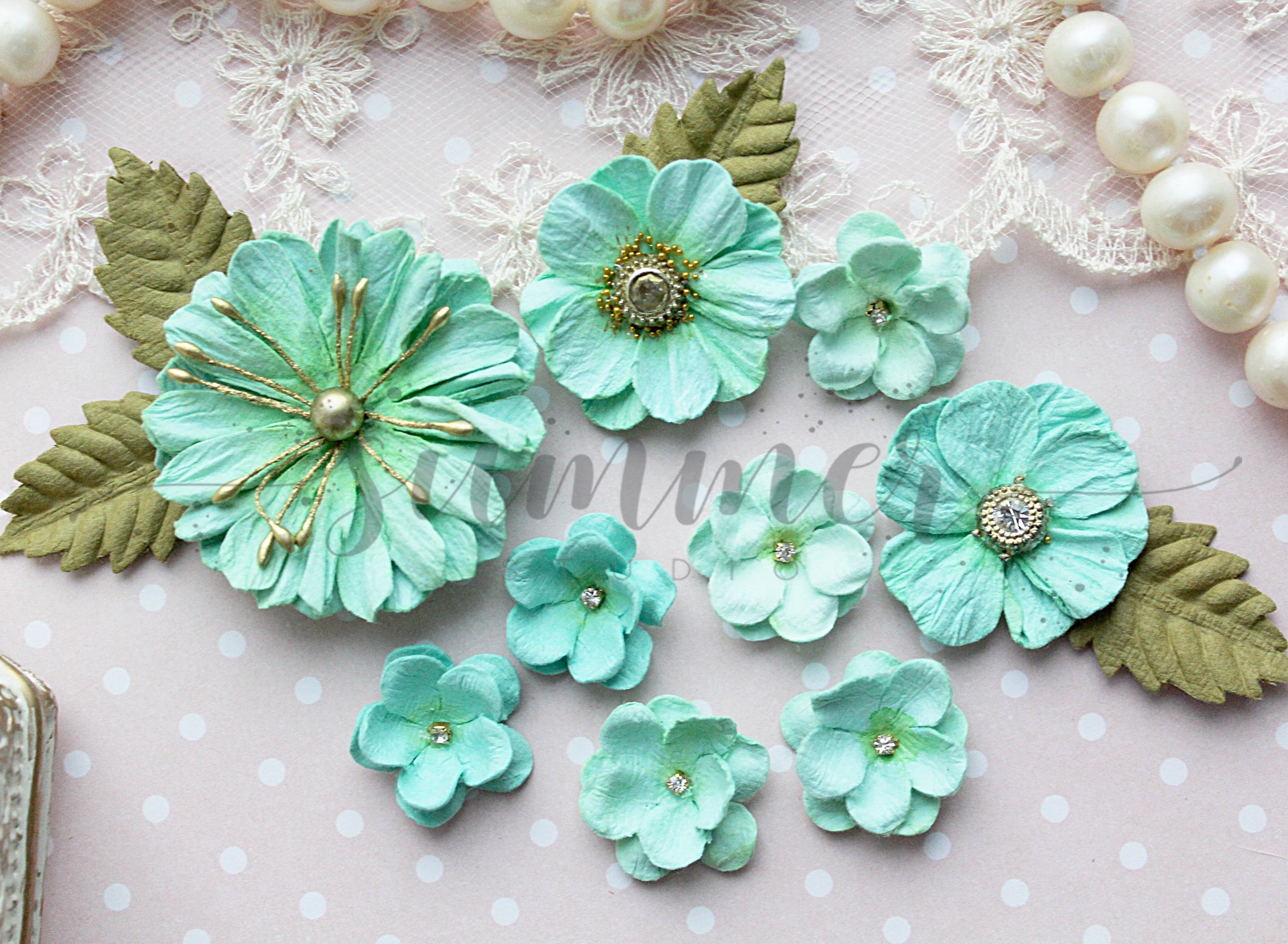 Набор бумажных цветов Summer studio "Vanilla blue"