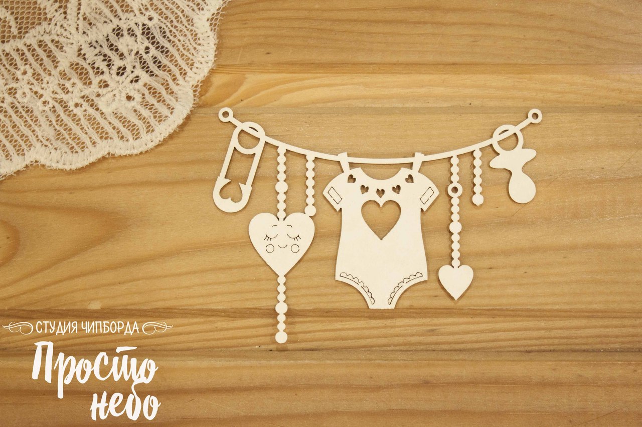 Чипборд Просто Небо. "Бодик с сердечком на веревке "