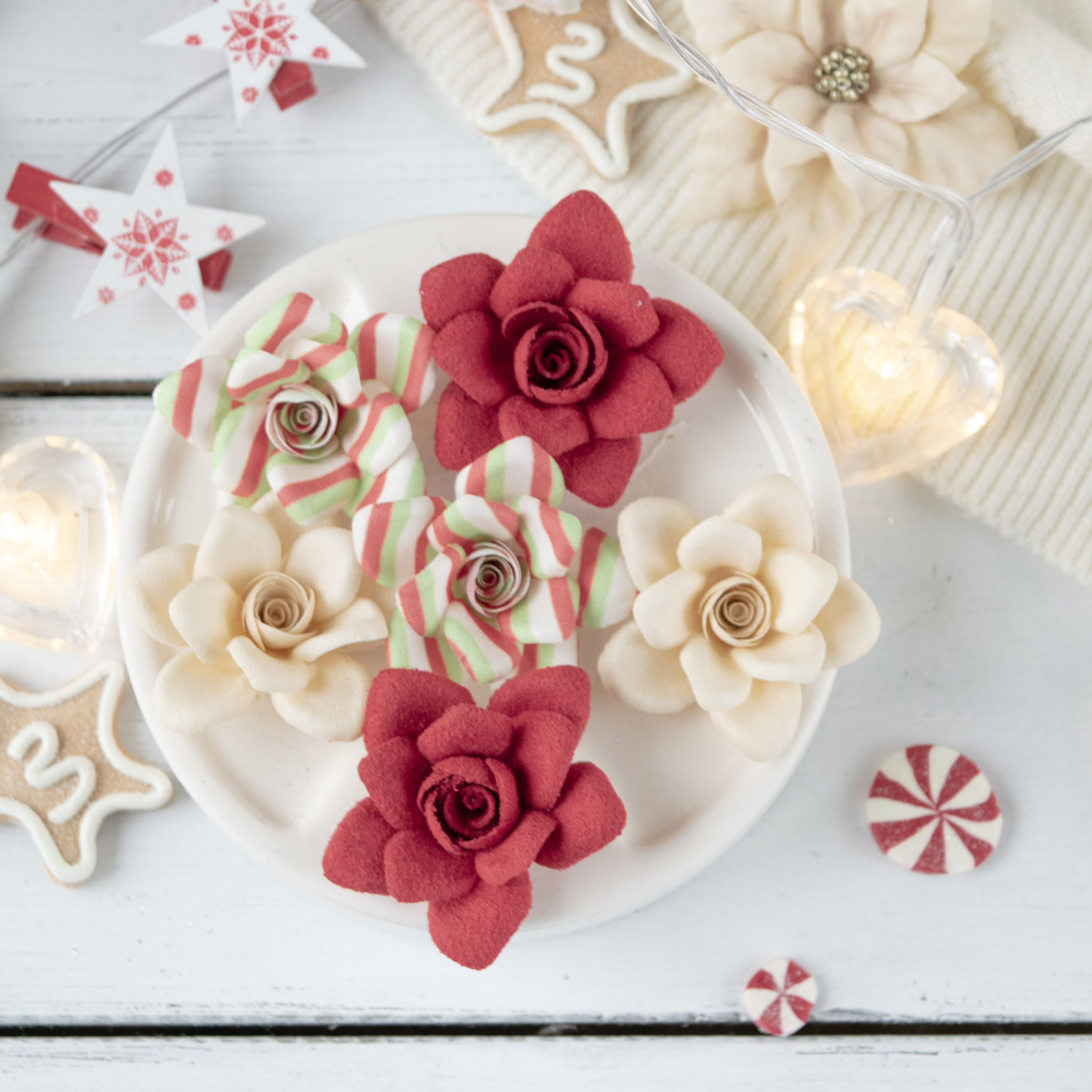 Набор тканевых цветов Pastel Flowers "Новогодний", замша+ткань, цвет красный
