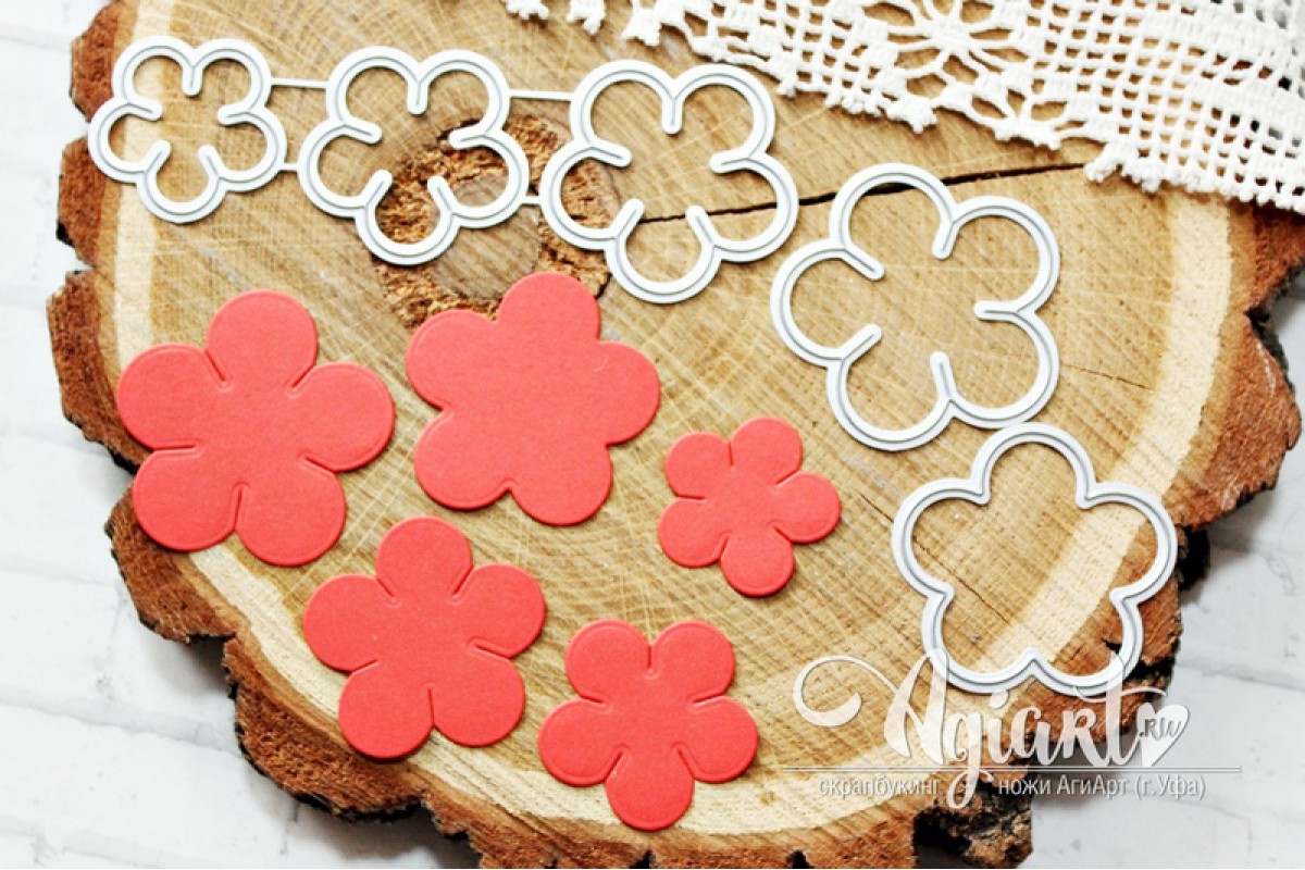 Диаметр вырубки: 44 mm, 41 mm, 38 mm, 34 mm, 29 mm. Набор создан для изготовления цветов розы.