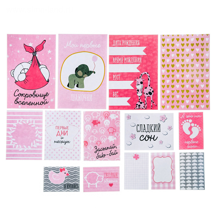 В наборе 14 карточек (10 х 15 см 4 штуки, 7,5 х 10 см 4 штуки и 5 х 7,5 см 6 штук)