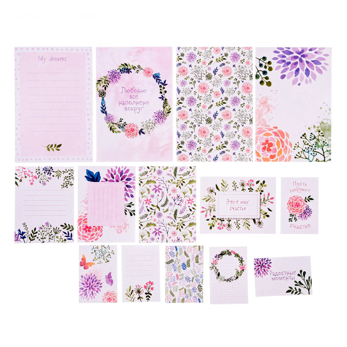 В наборе 14 карточек (10 х 15 см 4 штуки, 7,5 х 10 см 4 штуки и 5 х 7,5 см 6 штук)