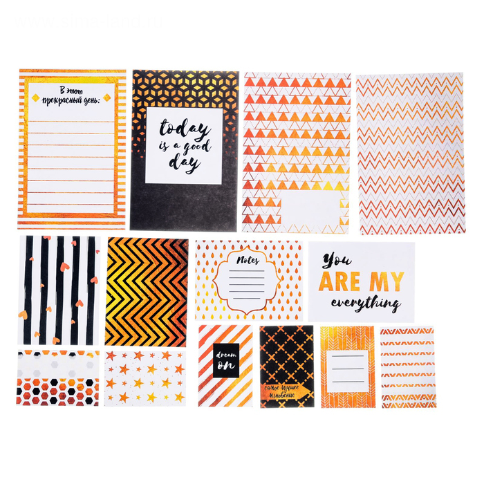 В наборе 14 карточек (10 х 15 см 4 штуки, 7,5 х 10 см 4 штуки и 5 х 7,5 см 6 штук)