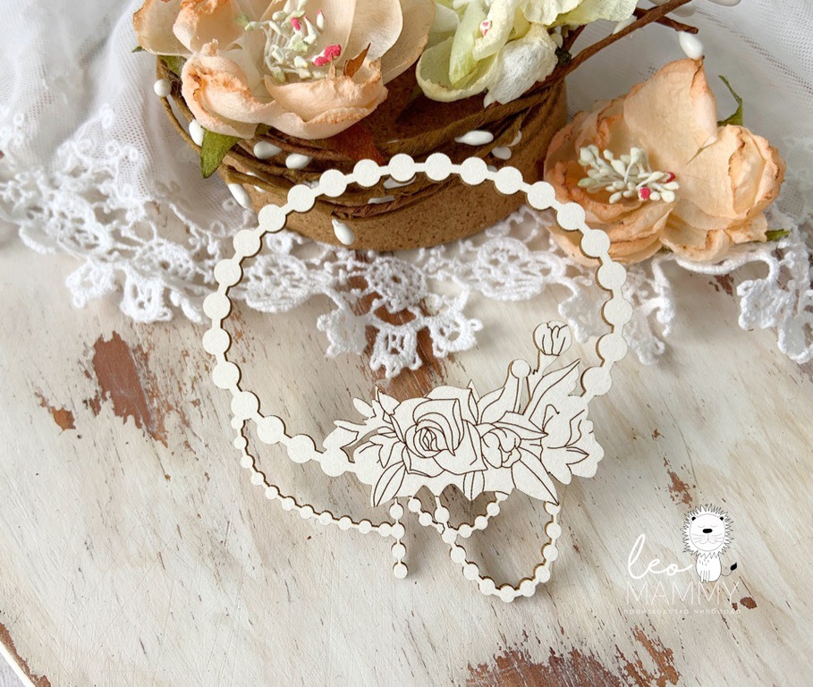 Чипборд LeoMAMMY "Рамочка жемчужная с цветами"