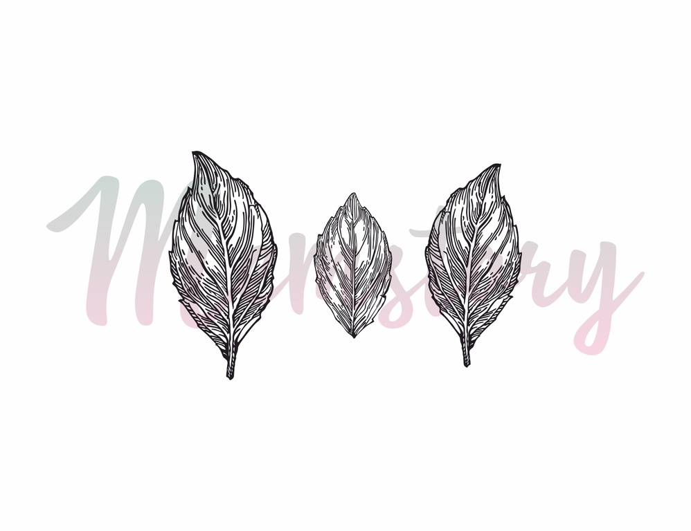 Штамп фотополимерный, бирюзового цвета. Размеры листочков: 2 / 4,3 см, 1,5 / 2,8 см, 1,8 / 3,9 см.