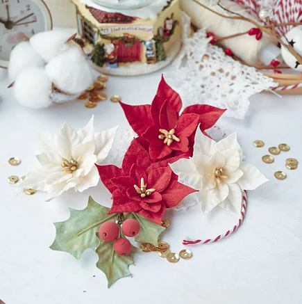 Набор тканевых цветов Pastel Flowers "Сказочная зима ПУАНСЕТТИИ", красный
