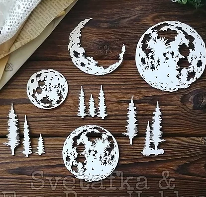 Размер плашки 15 на 19 см. Самая маленькая ёлка - 2см. Выполнен из картона кремового цвета толщиной 1,5мм.