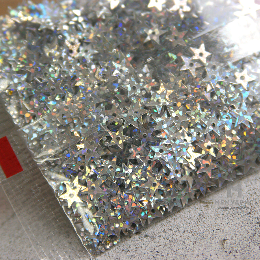 Пайетки Zlatka "Звездочки серебряные", голографические