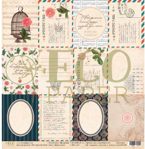 Бумага для скрапбукинга Eco paper "Мемуары" Карточки (ECO91)