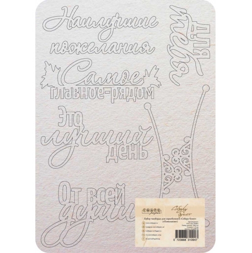 Размер листа с вырубкой 9,5 на 13,5 см. В наборе 7 элементов. Чипборд выполнен из плотного картона 1,15мм. Предназначен для украшения и декорирования альбомомв и открыток в скрапбукинге. Можно использовать как не обработанным, так и окрашивать в любые цвета с помощью красок, спреев, паст и пр.
