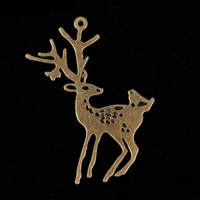 Подвеска металлическая "Олень с птичкой". цвет античный бронзовый (743)