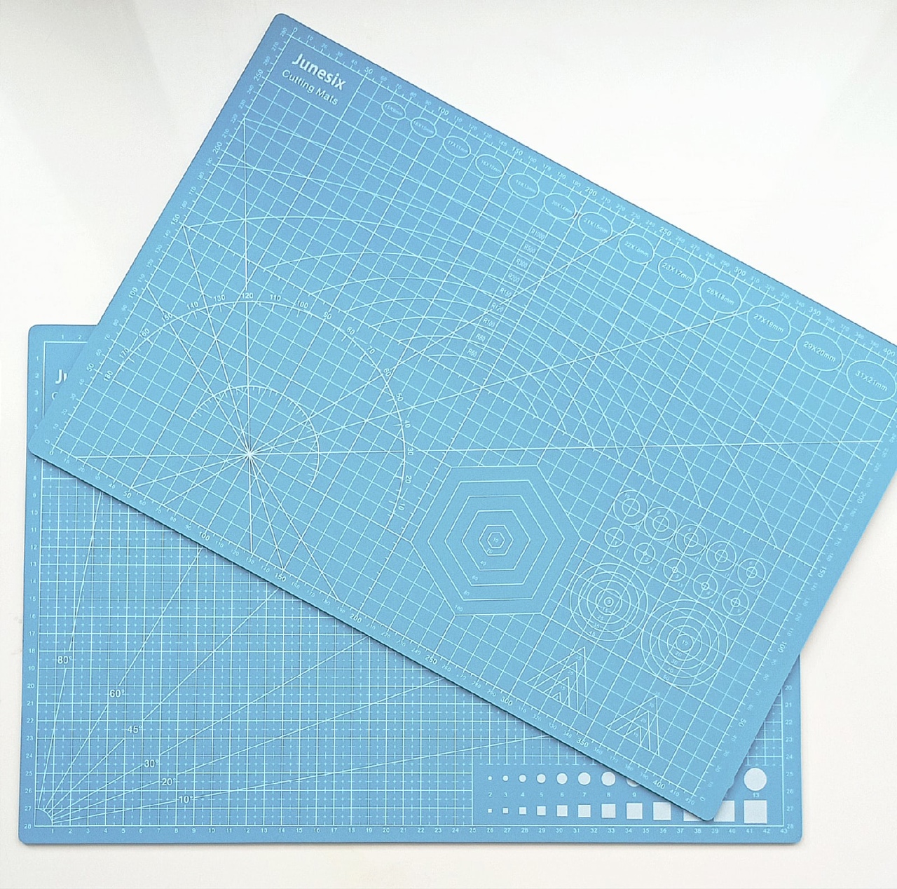 Коврик для резки двусторонний с сантиметровой разметкой. Служит для защиты рабочей поверхности при работе с ножами.Есть дополнительная разметка по 0,5см с одной из сторон. А также разметка углов, окружностей радиусом до метра, различных геометрических фигур и транспортир.