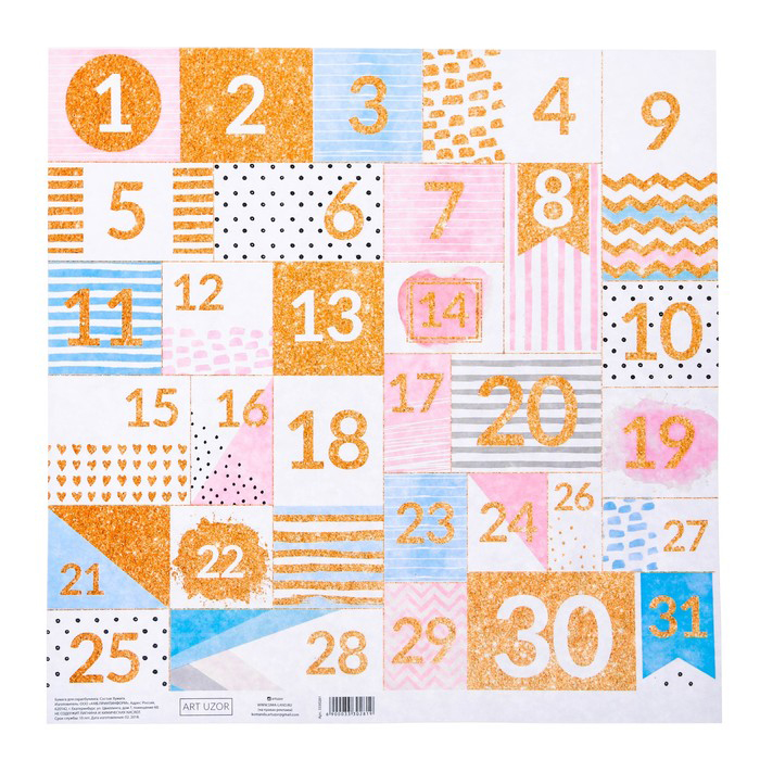 Бумага для скрапбукинга с блестками АртУзор "Календарь" (ART691)