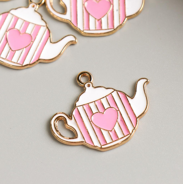 Подвеска металлическая эмаль "Чайник с сердечком", золото