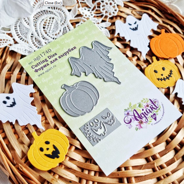 В наборе три ножа. Размеры вырубки: привидение - 60*54 mm., тыква - 38*40 mm., общий размер пластины - 39*21 mm.