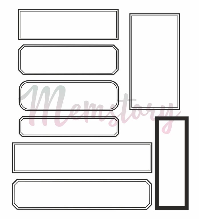 Штамп фотополимерный, бирюзового цвета. Размеры: 2,5 x 4,8; 4,5 x 1,5; 5 x 1; Три лейбла с разными углами 5 x 1,5; Два лейбла под ними 7 x 1,5 см.