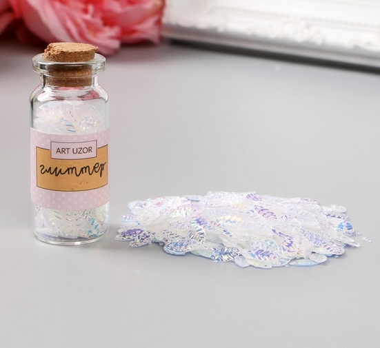 Глиттер в баночке "Листики", цвет белый перламутр