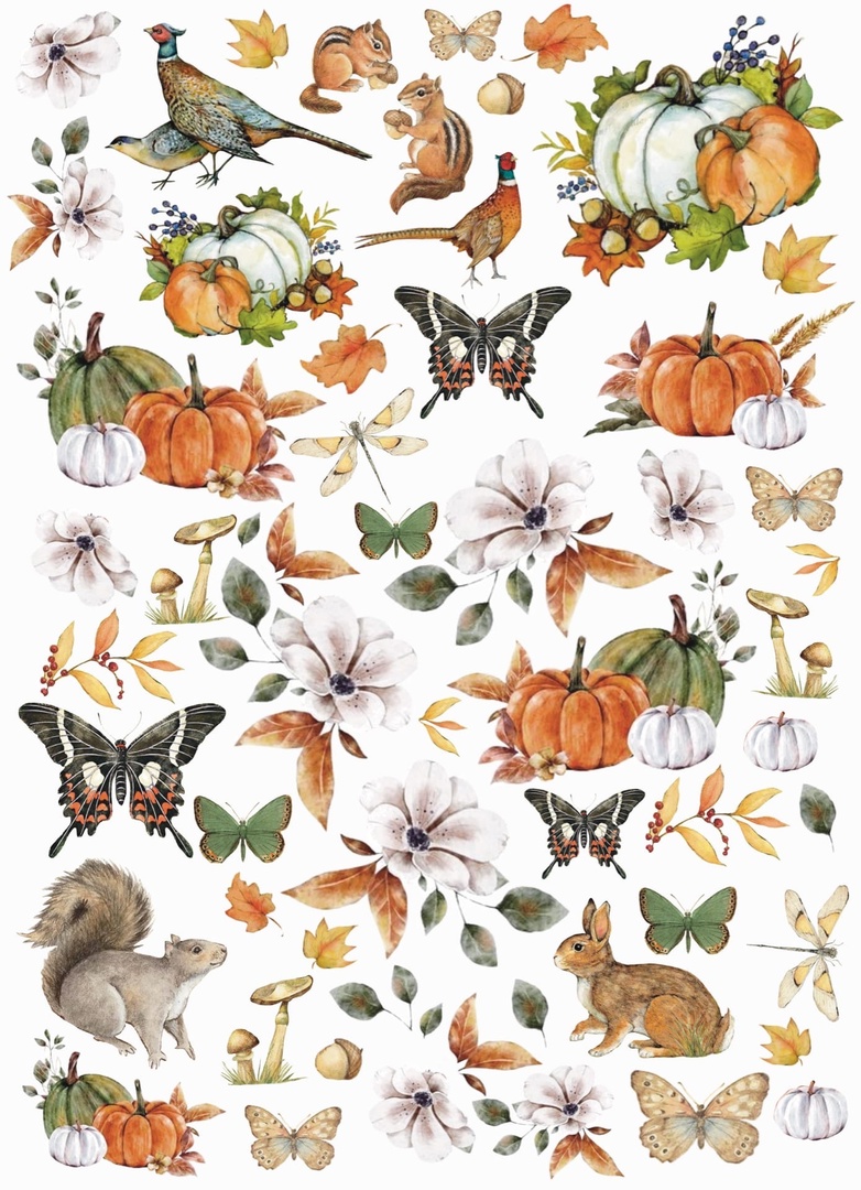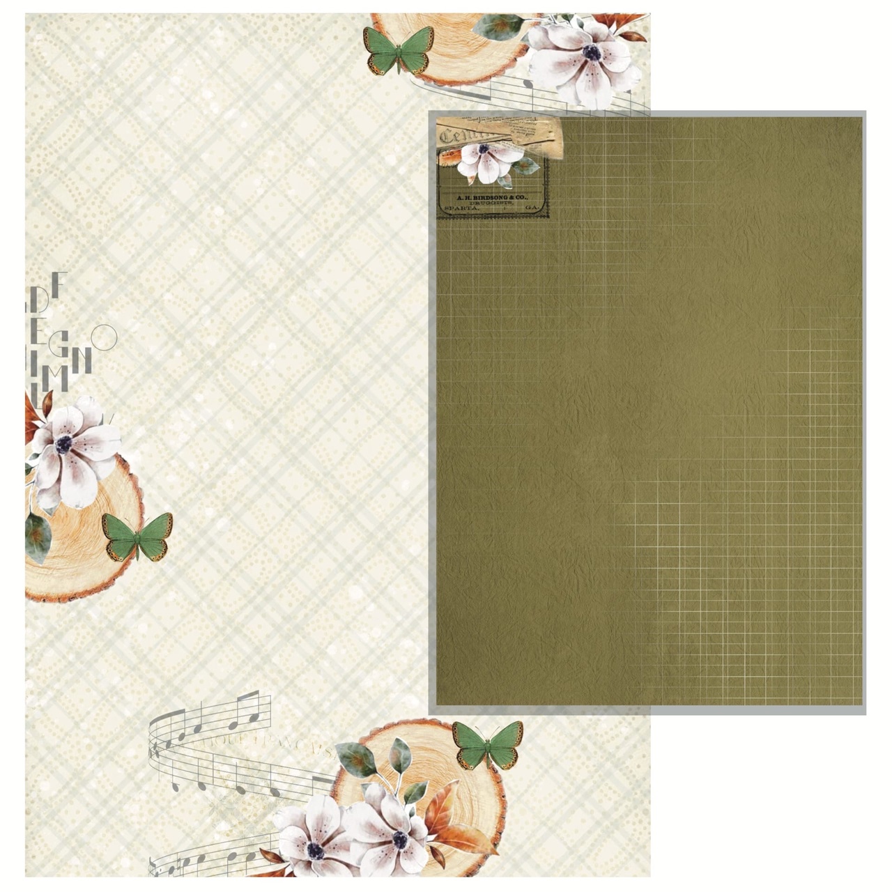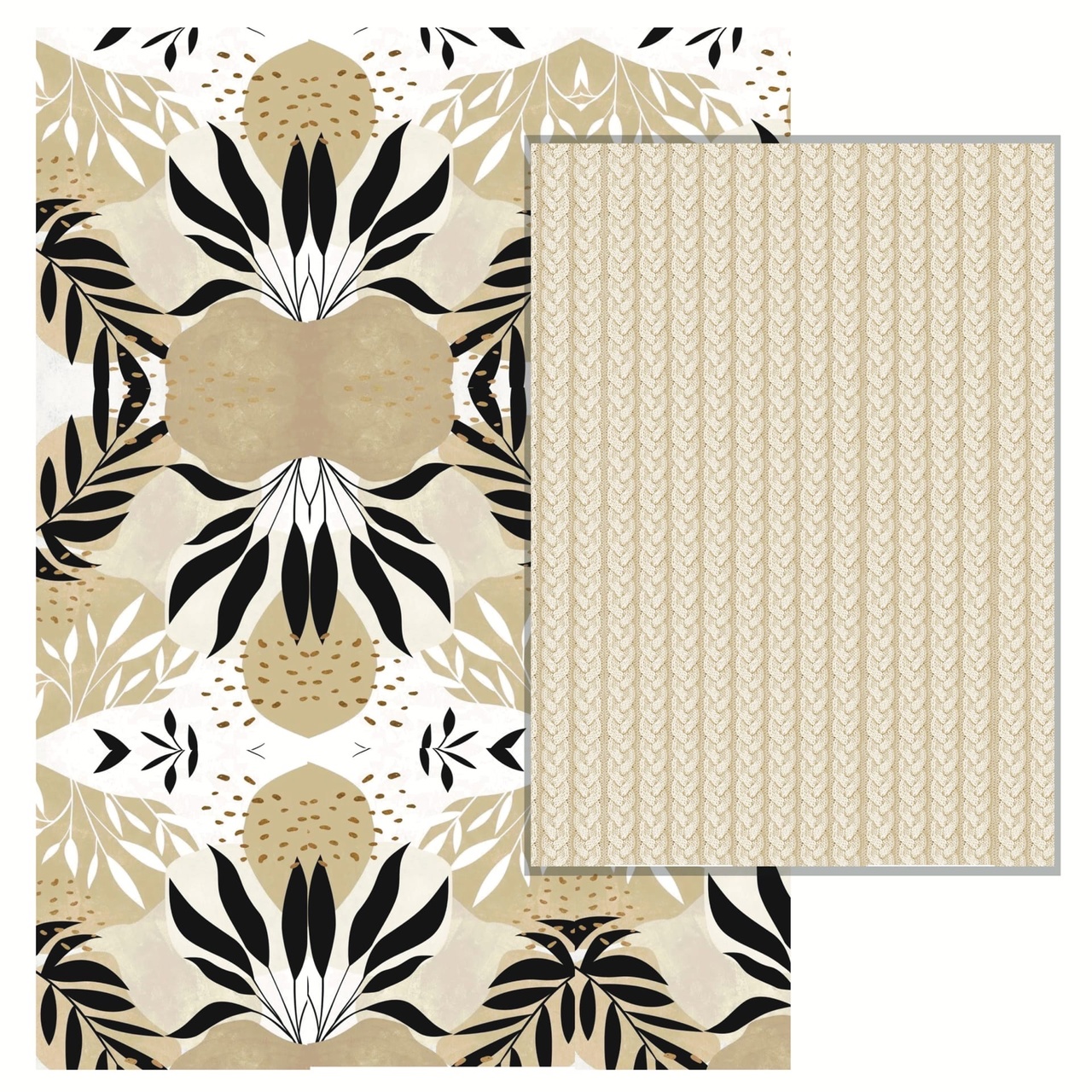 Набор двусторонней бумаги 20х27.5 см (чуть меньше А4), 8 листов (7листов двусторонних + односторонний лист с элементами для вырезания) + бонус элементы для вырезания на обороте обложки, плотность 250 г/м2.
