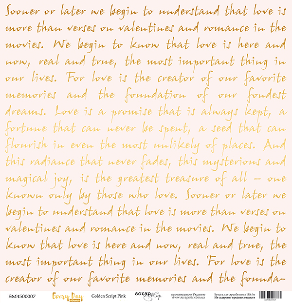 Бумага Scrapмир с фольгированием "Every Day Gold", скрипт на розовом (SM343)