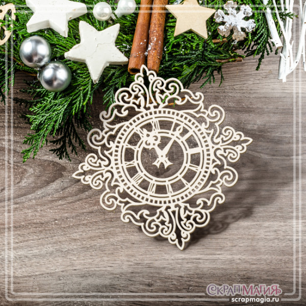 Чипборд Скрапмагия "Часы в ажурной рамке" 80х83 мм