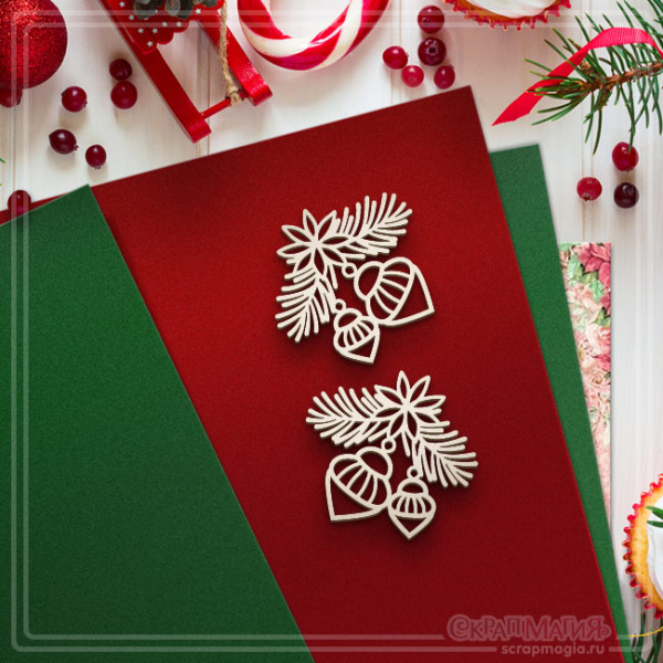 Чипборд Скрапмагия "Еловые веточки с игрушками" 2 эл
