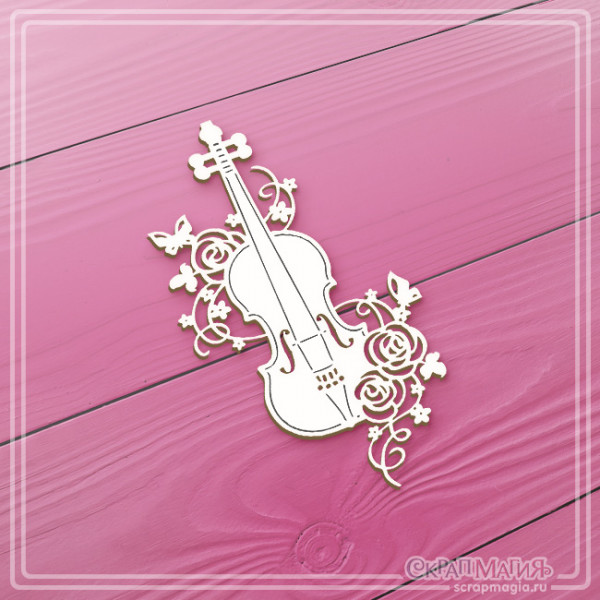 Чипборд Скрапмагия "Скрипка с розами" 48х91 мм