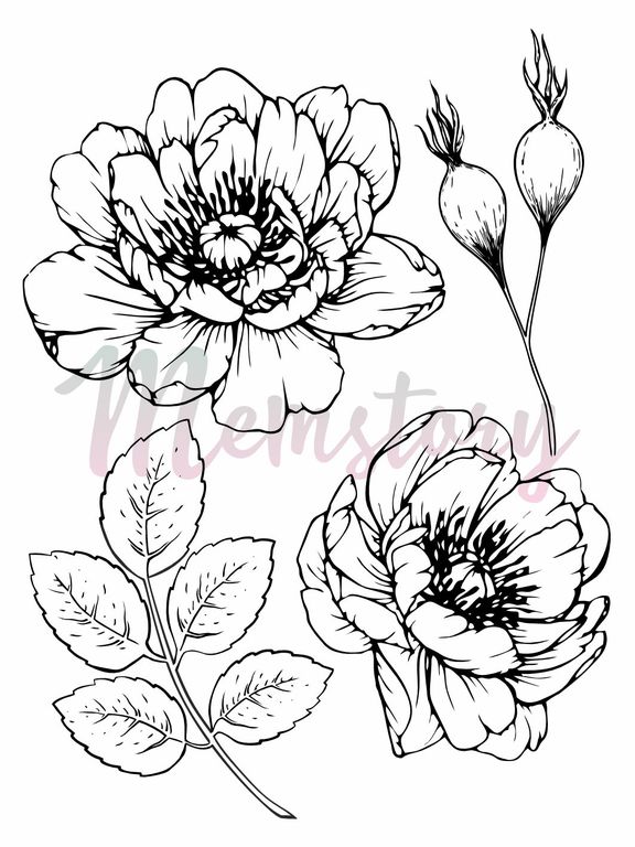 Размер большоего цветка 6 х 6,2 см; веточка с ягодами 2,4 х 6 см; веточка с листочками 4,3 х 5,7 см; цветок 4,5 х 5 см.