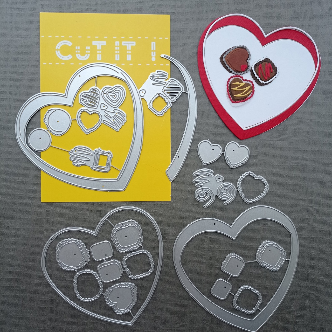 5 плашек с ножами коробки, конфет и глазури. Размер сердечка-коробочки около 11х11см конфетки в среднем 3х3см
