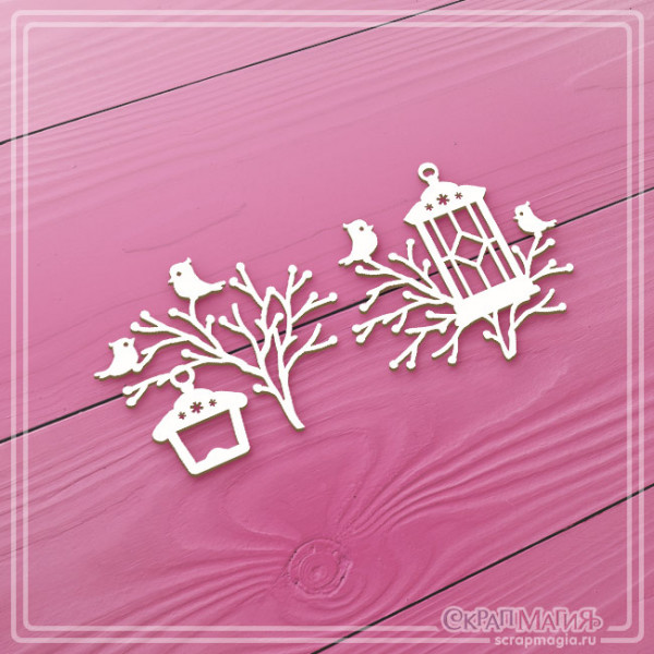 Чипборд Скрапмагия "Веточки с птичками" 2 эл