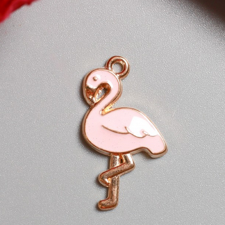 Подвеска металлическая эмаль "Розовый фламинго", золото (892)