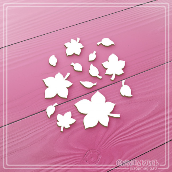 Набор чипборда из 13 элементов. Размеры элементов: от 21х21 мм до 5х5 мм. Изготовлен из пивного картона белого цвета толщиной 1,15 мм.