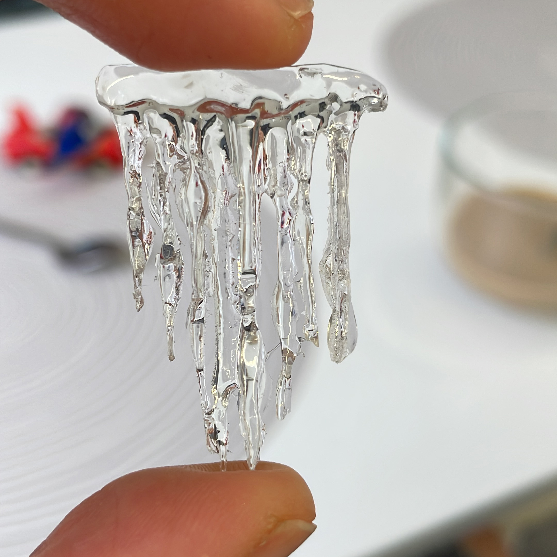 Размер около 3 см х 4 см. Выполнены вручную, размер и внешний вид каждой сосульки несколько отличаются друг от друга